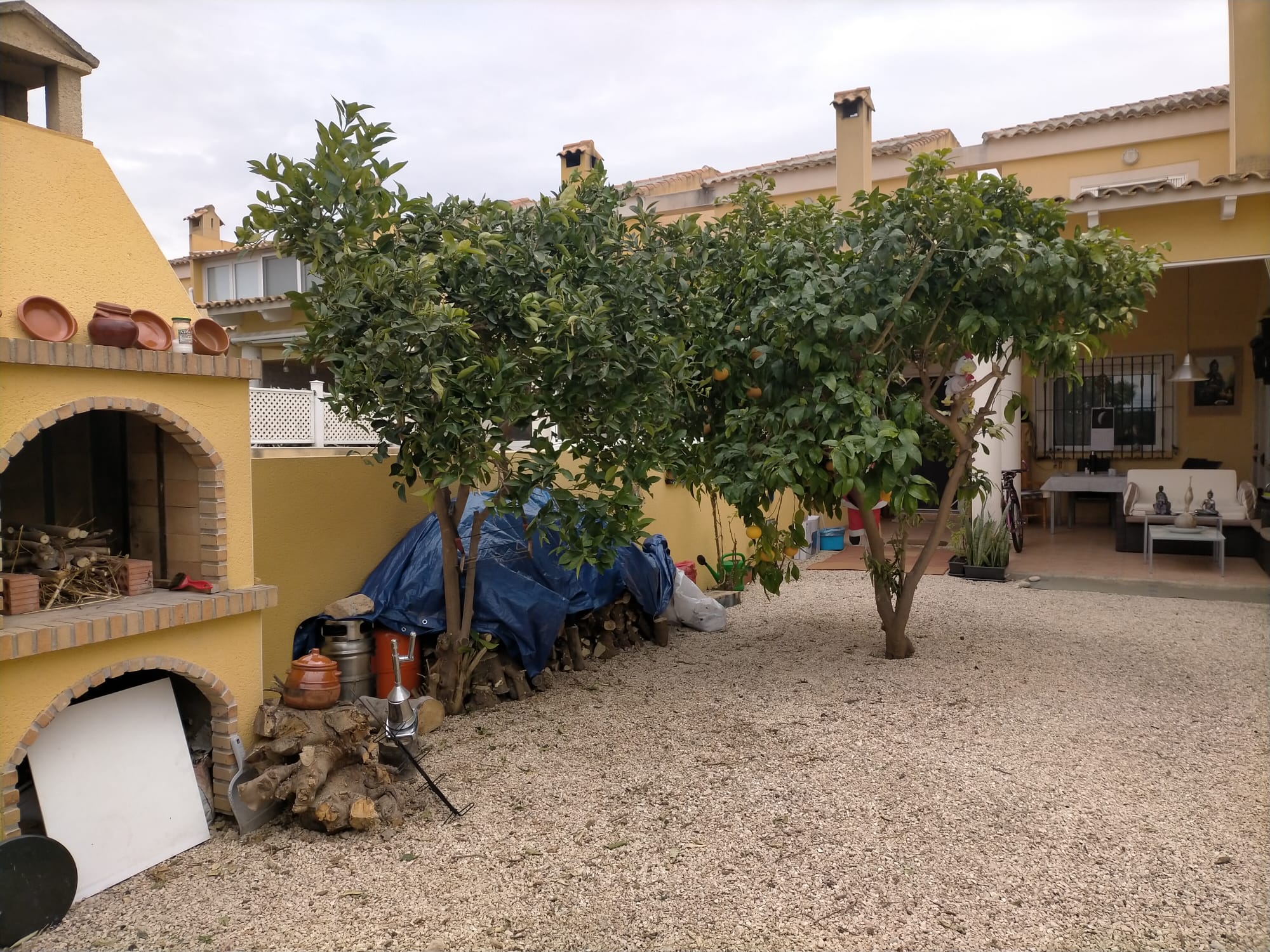 Esta encantadora casa de 3 dormitorios y 2 baños ofrece comodidad y amplitud para toda la familia. En la planta baja encontrarás un salón generoso con chimenea, un dormitorio, un cuarto de baño, cocina independiente y una pequeña galería con acceso directo a la zona comunitaria con piscina. Además, cuenta con una terraza cubierta en la entrada y un bonito jardín con barbacoa, ideal para disfrutar al aire libre.